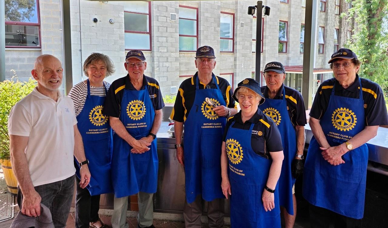 The Rotary Club of Canberra Sunrise's Roger, Suzanne, Kim, Peter, President Rosemary, Ray and Neil were happy to lend a hand and provide the barbeque lunch for the participating Canberra Grammar School students and their special guests.